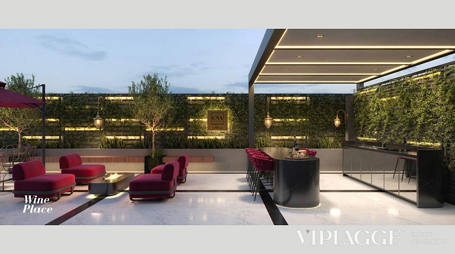 • Áreas de convivência específicas como Wine Place, Lounge Externo e Praça de Fogo