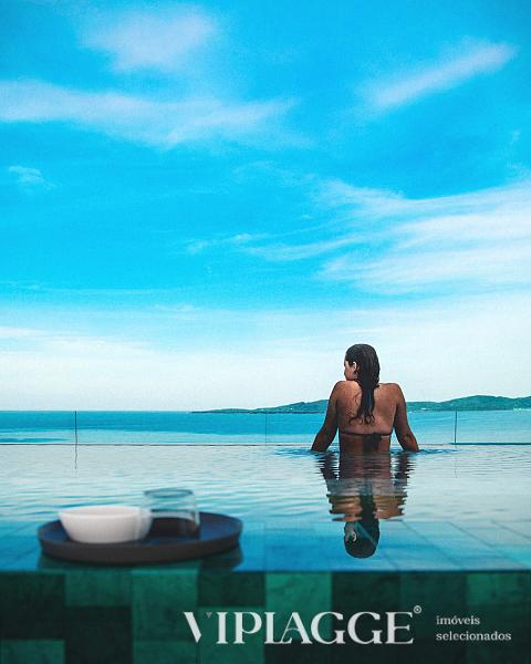 A #piscina de #borda #infinita com vista total para o mar proporciona aos moradores espaço e contato com a #natureza, dando a sensação de estar em uma casa nas alturas, um jeito especial de viver a vida.