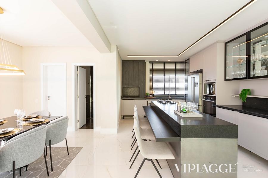 Ao entrar, você será recebido por uma ampla sala de estar e jantar, onde momentos especiais com seus entes queridos serão vividos. A cozinha gourmet integrada e equipada com churrasqueira a carvão é perfeita para desfrutar de momentos gastronômicos inesquecíveis.
